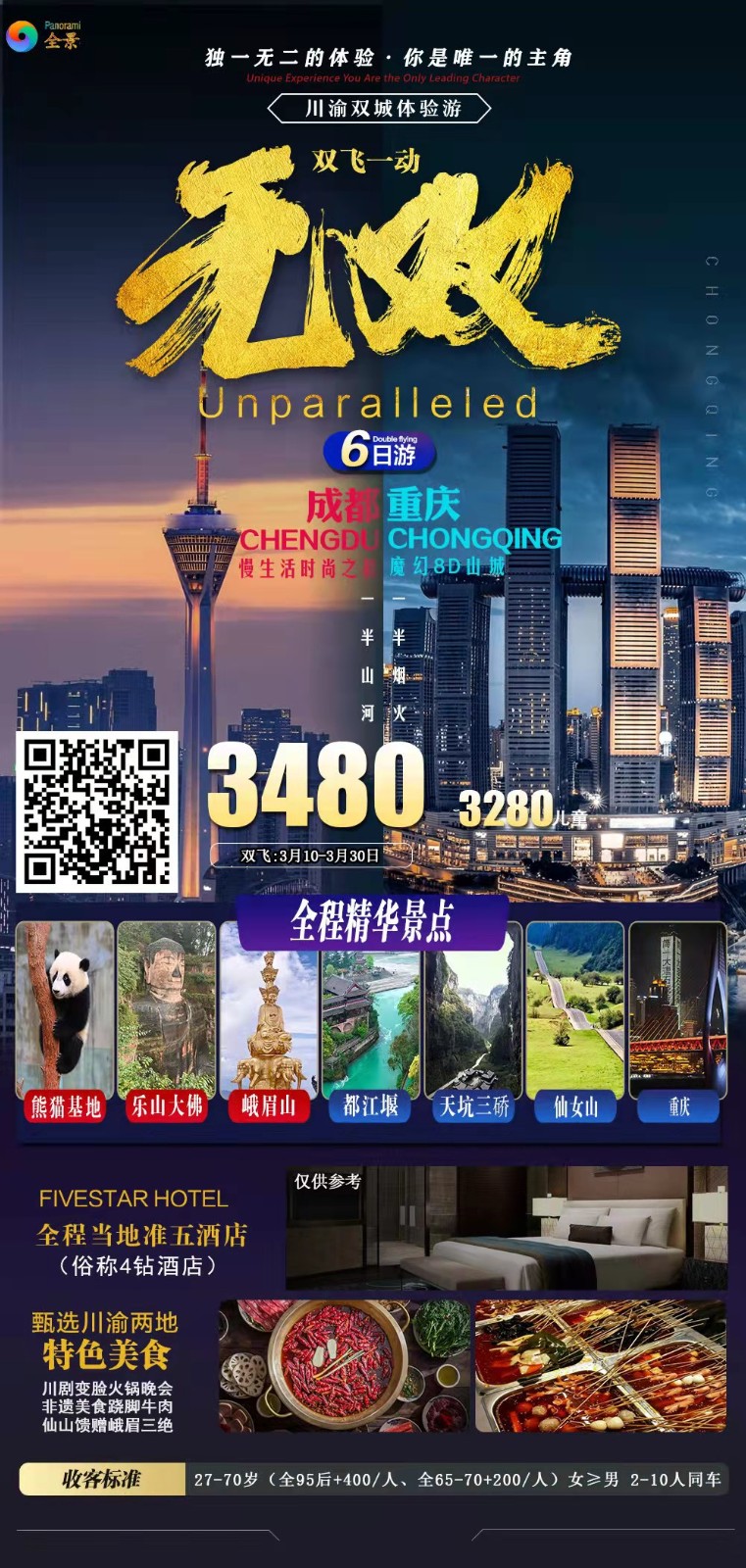 【无双】景点川渝连线双飞一动6天