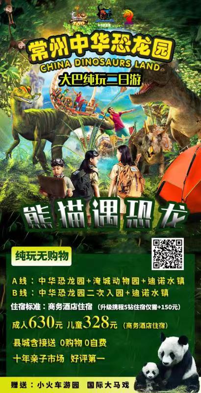 常州【熊猫遇恐龙-大巴2日游】